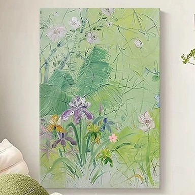 dipinto a olio fatto a mano su tela decorazione artistica da parete astratta verde e piante floreali fresche soggiorno ingresso decorazione arredamento casa dipinto arrotolato senza cornice non teso