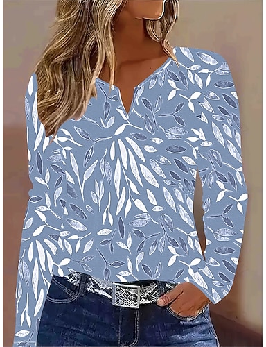 Per donna Maglietta Stampato Floreale Grafico Piante Vintage Elegante Classico Manica Lunga Scollo a V Collo a V Top Regolari Quotidiano Weekend Blu turchese Primavera Autunno Inverno