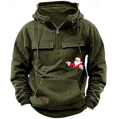 Per uomo Felpa con cappuccio Felpa con cappuccio e zip corta Nero Rosa Vino Blu Verde Con Cappuccio Babbo Natale Coulisse Tasca Stampato Sport & Outdoor Quotidiano Ferie Natale Streetwear Essenziale