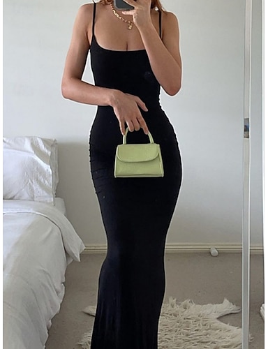 Per donna Abito maxi Tubino Abito Sottoveste Elegante Festa cocktail All'aperto Feste Ospite di nozze Senza schiena Vestibilità regolare Tinta unica Senza Maniche Spallina Nero Rosa Marrone