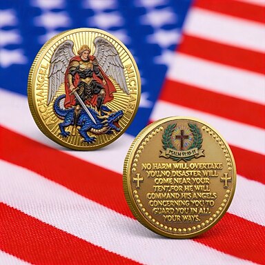 Moneta commemorativa dell'arcangelo Michele con iscrizione del Salmo 91:10-11, oggetto da collezione religioso cristiano, regalo di ispirazione per la protezione e la fede