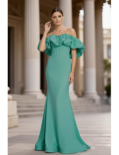 Sirena Tromba Lunghezza al pavimento Abito Formale Abito da sera Abito da Sera Elegante Senza Maniche Senza Spalle Balli di fine anno Formale Taffetà Senza schiena con Volant