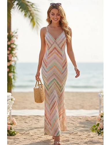 Tubino Colonna Lunghezza al pavimento Abito da invitata a nozze Abiti per invitati a matrimoni Quotidiano Senza Maniche Scollo a V Festa in giardino Matrimonio Senza schiena con Blocco di Colore