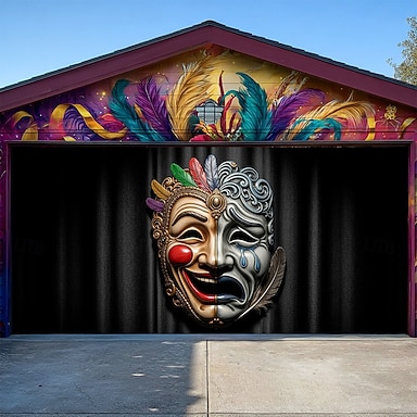 Martedì grasso Copertura per porta del garage Grande appeso Pagliaccio Lusso 3D Da serata All'aperto Sfondi di ripresa Porta d'ingresso Stile Carnevale di Venezia Arredamento per la casa