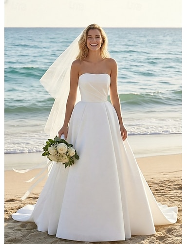 Abiti da sposa Linea ad A Senza Spalline Senza Maniche Strascico da Corte Raso Abiti da sposa Con Tinta unita