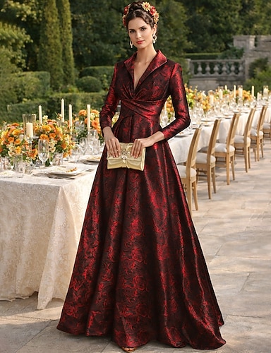 Linea ad A Lunghezza al pavimento Abito da invitata a nozze Abito Formale Abito da sera Abito da cerimonia per signora Manica 3/4 Scollo a V Elegante Vintage Formale Jacquard con Stampa floreale