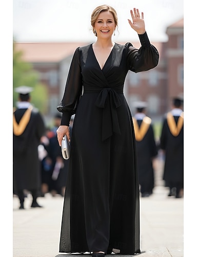 Abito a-line lungo fino al pavimento abito da sposa abiti formali abito madre della sposa maniche lunghe colletto camicia elegante vintage formale con fiocco(i)