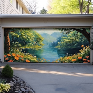 Decorazioni per Porta del Garage Paesaggio Copertura Porta del Garage Lago Primaverile Banner all'Aperto Grande Sfondo per Decorazioni di Casa per Eventi Festivi