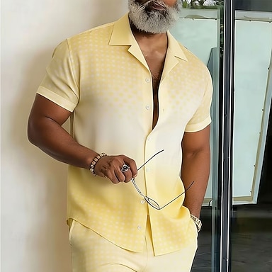 Per uomo Geometrico Griglia / Plaid Colore sfumato Camicia Camicia con Bottoni Camicia con collo camp Manica Corta Moda Casual Abbigliamento casual alla moda Vacanza Estate Primavera Colletto cubano