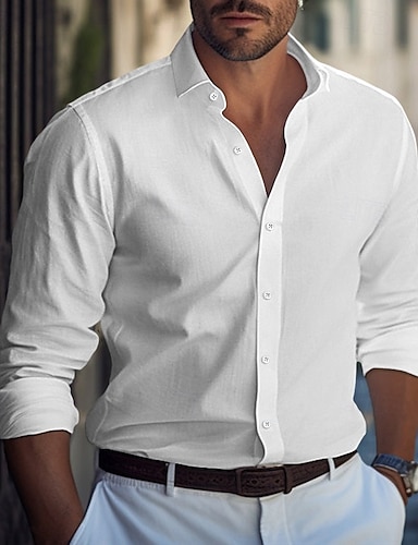 Per uomo Camicia in cotone e lino Semplice Vacanza Casual Quotidiano Nero Bianco Azzurro cielo Cachi Manica Lunga Bavero Abbigliamento Bottonato