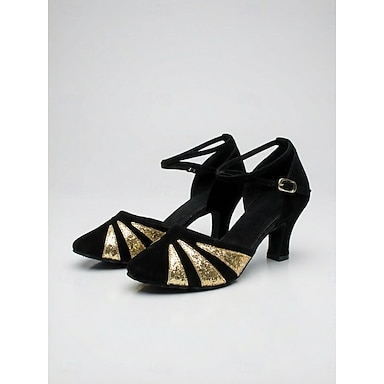 nero da donna &scarpe da ballo latino dorate - tacco basso, design con cinturini, ballo da sala, salsa, tango, pratica &calzature performanti