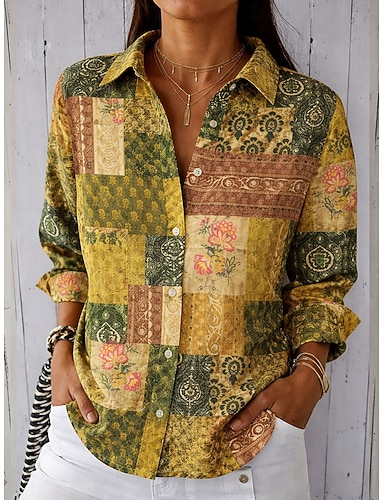 Per donna Blusa Stampato Floreale Grafico Vacanza Vintage Quotidiano Manica Lunga Colletto a Camicia Top Regolari Quotidiano All'aperto Ferie Verde Estate Primavera Autunno