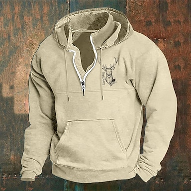 Per uomo Felpa con cappuccio a zip intera Felpa con cappuccio e zip Giacca in Pile Felpa con cappuccio in pile Nero Vino Blu Marrone Verde Con Cappuccio Renna Semplice Stampe Grafiche Cerniera Tasca