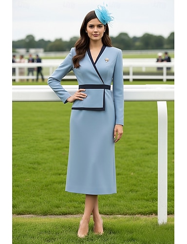 Vestito da festa a lunghezza caviglia in stile tubino abito da cocktail abito per invitata a matrimonio abito per madre della sposa maniche lunghe scollo a V elegante vintage formale con blocco di