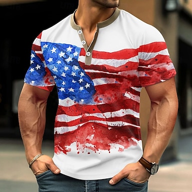 T-shirt con stampa grafica di bandiera americana degli Stati Uniti per uomini per il 250° anniversario dell'indipendenza dell'America camicia Henley maniche corte moda sportiva designer casual