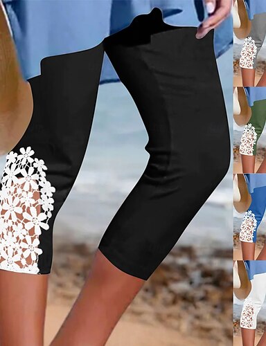 Per donna Leggings Vacanza Moda Streetwear Lunghezza al polpaccio Vita Alta Semplice Pizzo Fascia Elastica Comodo Morbido Confortevole Elasticizzato Streetwear Casual Ferie Blu Esercito verde Nero