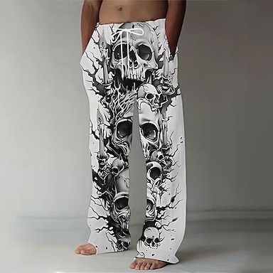 Costumi da uomo teschi pantaloni pantaloni baggy pantaloni casual vita media stile gotico scuro vacanza streetwear vita con cordoncino elastico pantaloni simili al lino con tasche estate primavera 3D