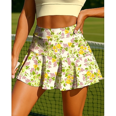 Per donna Piante Floreale Motivo Floreale Gonna casual Gonne da tennis Patchwork Tasca 2 in 1 UPF50+ Resistente ai Raggi UV Multistrato Pallavolo Tennis Badminton Pantaloncini Gonna Giallo Chiaro