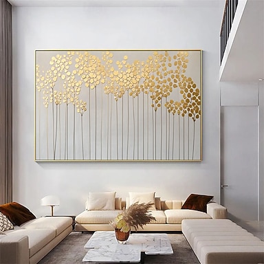 dipinto a olio minimalista su tela con albero dorato, grande arte murale, arte astratta originale, dipinto personalizzato, decorazione da parete dorata, soggiorno, arredamento per la casa