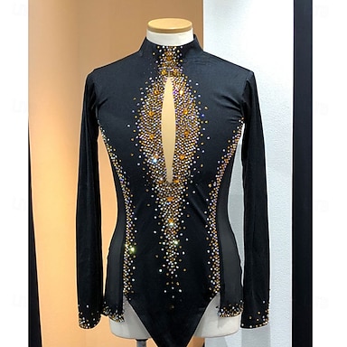 Vestito da pattinaggio artistico Per donna Da ragazza Pattinaggio sul ghiaccio Vestiti Nero Collage Foro per pollice Retato Elastene Elasticizzato Addestramento Da allenamento Professionale Vestiti
