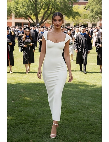 Tubino Colonna Lunghezza alla caviglia Vestito da Festa Abito da Cocktail Abiti per invitati a matrimoni Elegante Piccoli Abiti Bianchi Senza Maniche Girocollo Formale Laurea Tessuto Elasticizzato con