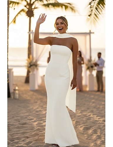 Sirena Tromba Lunghezza al pavimento Abito Bianco Piccolo vestito bianco Abiti per invitati a matrimoni Elegante Schiena Scoperta Senza Maniche Senza Spalline Matrimonio Formale Tessuto Elasticizzato