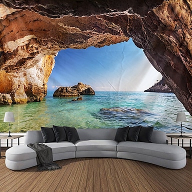 arazzo da parete arte arredamento coperta tenda picnic tovaglia appesa casa camera da letto soggiorno dormitorio decorazione paesaggio spiaggia mare oceano onda alba tramonto roseo nuvola