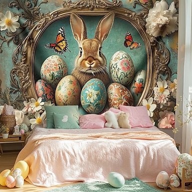 Arazzo appeso Uova Coniglio Arte murale Grande arazzo Decorazione murale Fotografia Sfondo Coperta Tenda Decorazione per casa Camera da letto Soggiorno