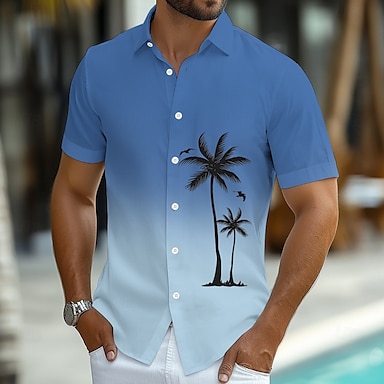 Per uomo Albero di cocco Colore sfumato Piante tropicali Camicia hawaiana Camicia con bottoni Manica corta Hawaiano Ricorrere Da mare Per eventi Abbigliamento mare Estate Primavera Collo ripiegabile