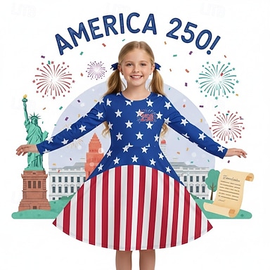 Ragazze 3D Grafico 250° anniversario Maglietta Manica Corta Stampa 3D Estate Primavera Sport Moda Streetwear Bambini 4-12 Anni Girocollo Casuale Quotidiano All'aperto Vestibilità regolare