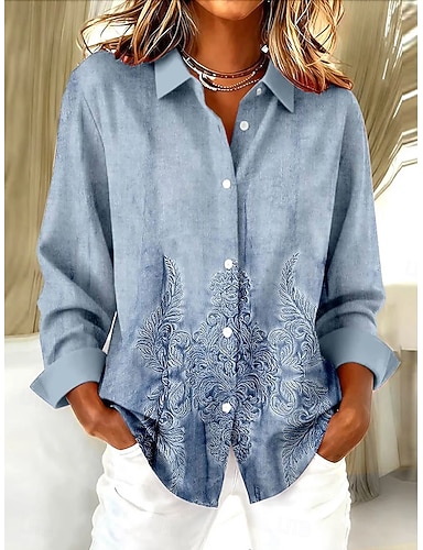 Per donna Camicia Stampato Floreale Grafico Bohemien Vintage Classico Manica Lunga Colletto a Camicia Top Regolari Quotidiano Ferie Uscire Blu Estate Primavera Autunno