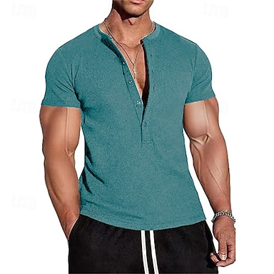 Per uomo Maglietta Maglia Henley Camicia a Maniche Corte Manica Corta Henley Estate Primavera Semplice Moda Designer Essenziale Bottoni Vacanza Streetwear Uscire Nero Blu Verde Maglietta Top per Uomo