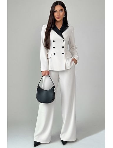 Per donna Completi Tuta Formale Ospite di nozze Crepe Elasticizzato Elegante Minimalista Manica 3/4 plissettata Lunghezza al pavimento Risvolto a punta Doppiopetto