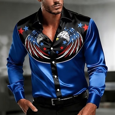Per uomo 4 luglio, 250° anniversario degli Stati Uniti Aquila Bandiera Americana Camicia Camicia in raso Camicia con Bottoni Manica Lunga Patriotico All'aperto Festival Estate Primavera Collo