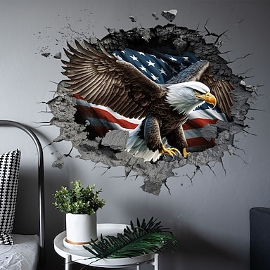 Confezione da 2 adesivi murali con bandiera americana per il giorno dell'indipendenza, foro rotto, adesivi personalizzati per soggiorno
