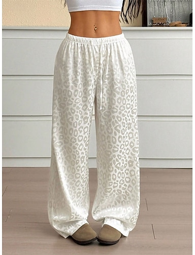 Per donna Culotte Gamba Larga Chinos Dritto Elegante Vacanza Vintage Lunghezza intera Vita media Tinta unica Leopardo Patchwork Fascia Elastica Stampa Comodo Confortevole Traspirante Elasticizzato