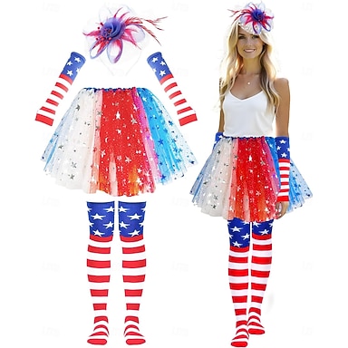 250° anniversario USA Disco Anni '80 Gonna a cerchio Tutu Sottogonna con accessori Costume Per donna Carnevale 2026 Costume di Carnevale Halloween Carnevale Mascherata Giorno dell'Indipendenza 4