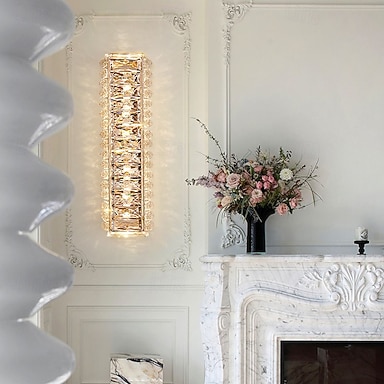 Applique da parete a LED in cristallo rosato da 25 W, barra lunga, montaggio a parete per camera da letto, lampade lineari per lavabo da bagno, sopra lo specchio, lampada da parete da comodino per