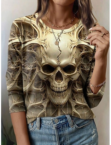 T-Shirt Donna Stampa Teschi Grafica Vintage Moda Elegante Maniche Lunghe Collo Giro Collo Rotondo Top Regolari Stampa Giornaliera Gialla Blu Viola Verde Grigia Estate Primavera Autunno