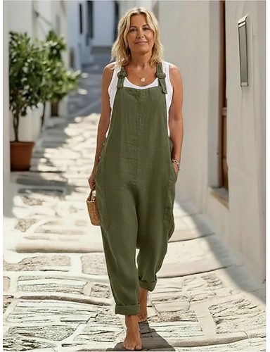 Per donna Di tendenza Tuta Tute Tasche laterali Lunghezza intera Pantaloni Informale Fine settimana Anelastico Liscio Comfort Vita normale Verde Nero Rosso S M L XL XXL