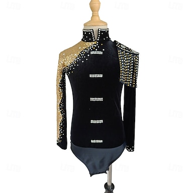Maglia da pattinaggio artistico Per uomo Ragazzi Pattinaggio sul ghiaccio Top Nero Patchwork Spandex Alta elasticità Allenamento Professionale Competizione Vestiti da pattinaggio sul ghiaccio