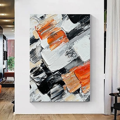 pittura a olio dipinta a mano a mano con struttura spessa arte della parete arancione nero bianco paesaggio decorazione decorazione della casa decorazione pittura su tela per soggiorno