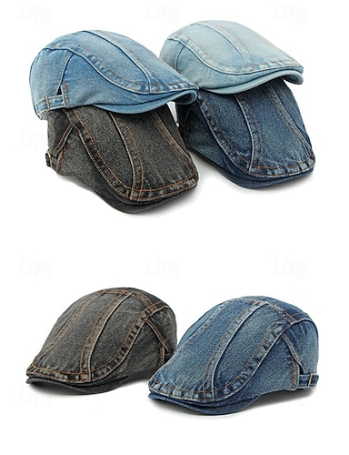 berretto piatto da uomo in denim di cotone - classico stile vintage, traspirante e confortevole, ideale per abbigliamento casual e attività all'aperto