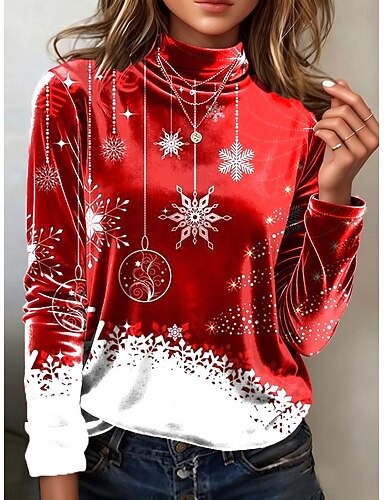 San Valentino Per donna Tunica Maglietta Stampato Grafico A Pois Fiocco di neve Elegante Vintage Moda Manica Lunga Dolcevita Top Regolari Quotidiano Uscire Weekend Blu Giallo Rosso Viola Verde Autunno