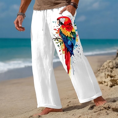 Per uomo Animale Pappagallo Pantaloni Pantaloni casual Pantaloni Larghi Misura del girovita medio Hawaiano All'aperto Vacanza Abbigliamento mare Coulisse elastica in vita Pantaloni tipo lino con