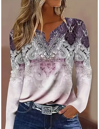 Per donna Maglietta Stampato Grafico Piante Tribale Vintage Elegante Casual Manica Lunga Scollo a V Collo a V Top Regolari Quotidiano Weekend Blu Viola Primavera Autunno Inverno