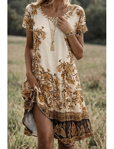 Per donna Mini Abito Vestito T-Shirt Abito a trapezio Abito Estivo Casual Quotidiano Spiaggia Ferie Vestibilità comoda Floreale Grafico Foglia Manica Corta Girocollo Arancione Albicocca Estate