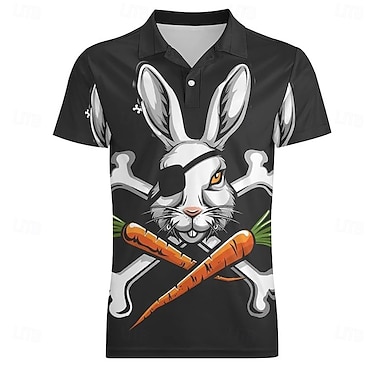 Pasqua Per uomo Coniglio Polo Manica Corta Magliette polo Camicie con Colletto Vintage Abbigliamento quotidiano Abito da festa Stampa 3D Estate Primavera Autunno Nero