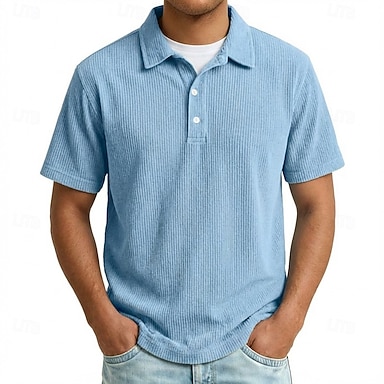 Per uomo Camicia lavata con acido Polo in Cotone Casuale Ferie Bavero Colletto Polo a Coste Manica Corta Moda Essenziale Semplice Vintage ▾ angosciato Estate Primavera Tutte le stagioni Vestibilit