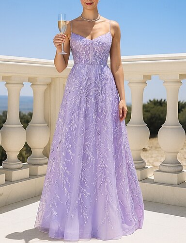 Linea ad A Tubino Colonna Lunghezza al pavimento Abito da Ballo Abito da sera Abiti da Ballo Elegante Festa Scintillante Senza Maniche Scollo a V Balli di fine anno Matrimonio Tulle con Pizzo Glitter